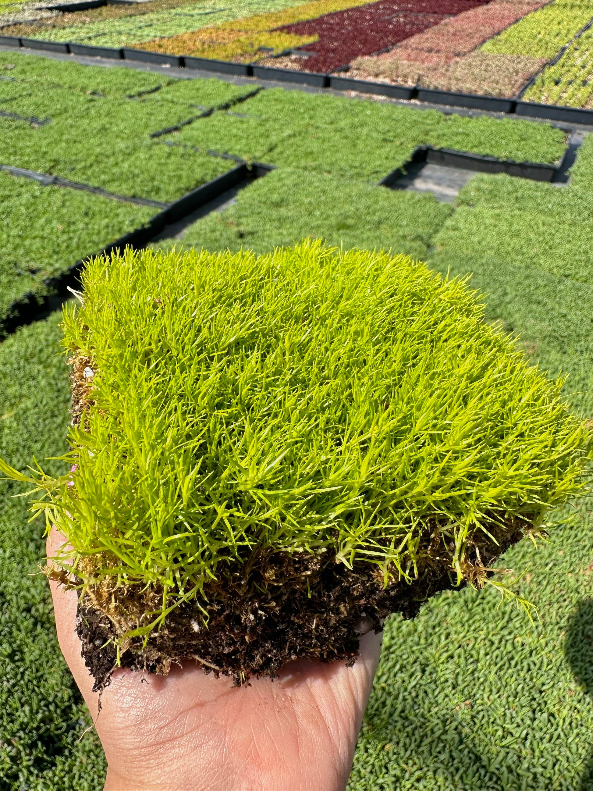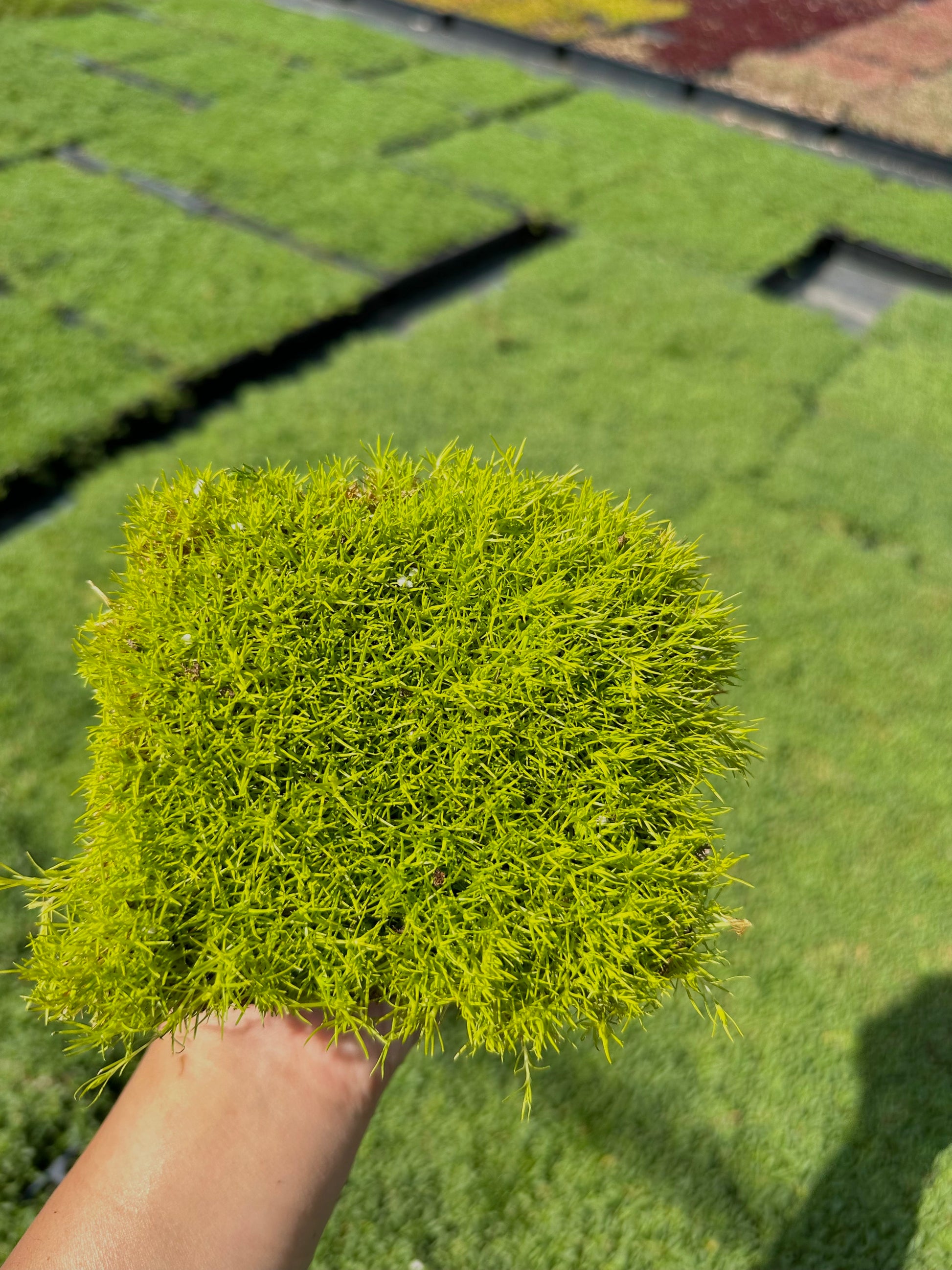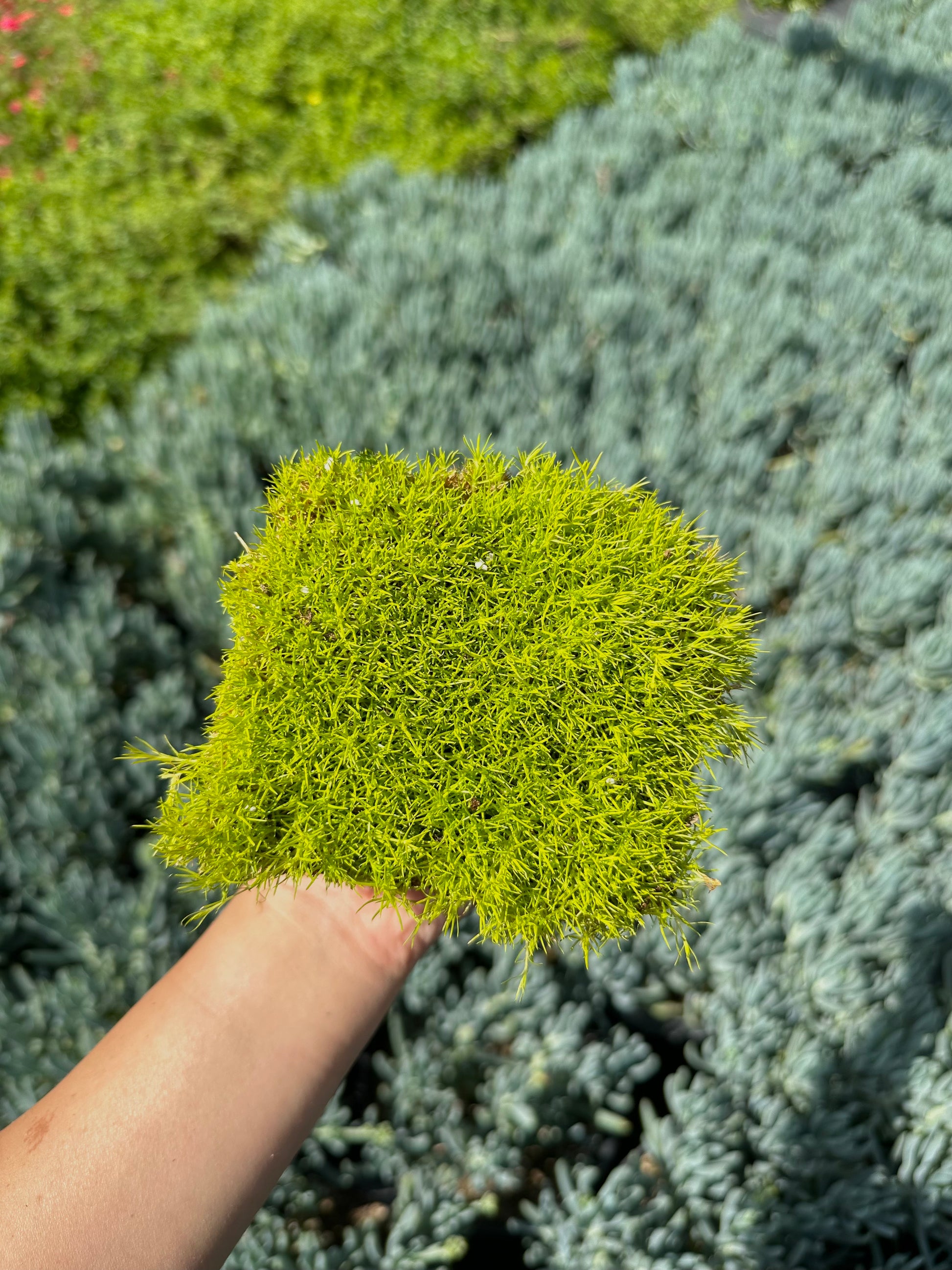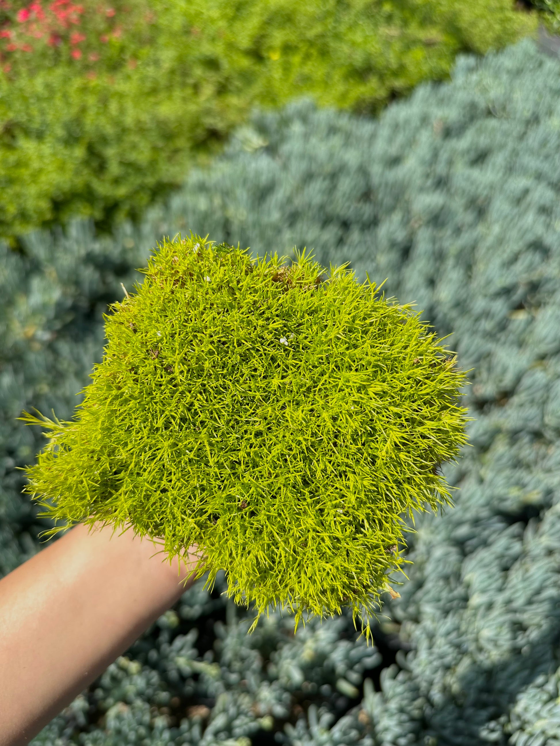 - Features dense, moss-like foliage in shades of green